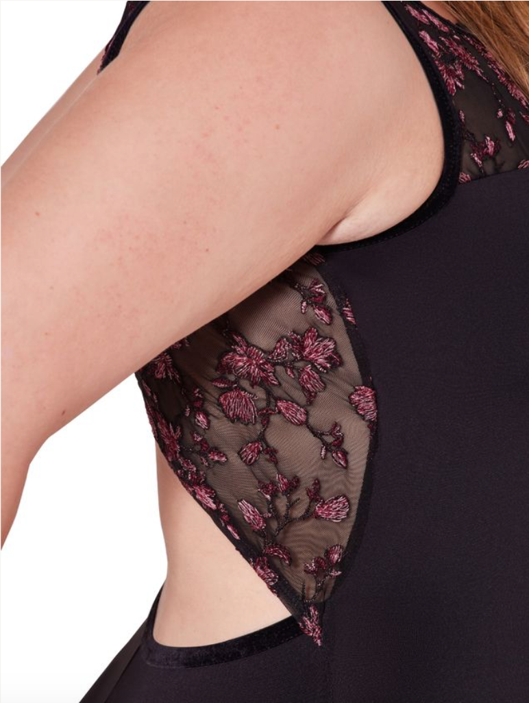 The classic tank leotard has been given a beautiful glow up with the Ornate Romance, embroidered floral mesh yoke and back detail. Match with the Enchant skirt 12406W for a complete look