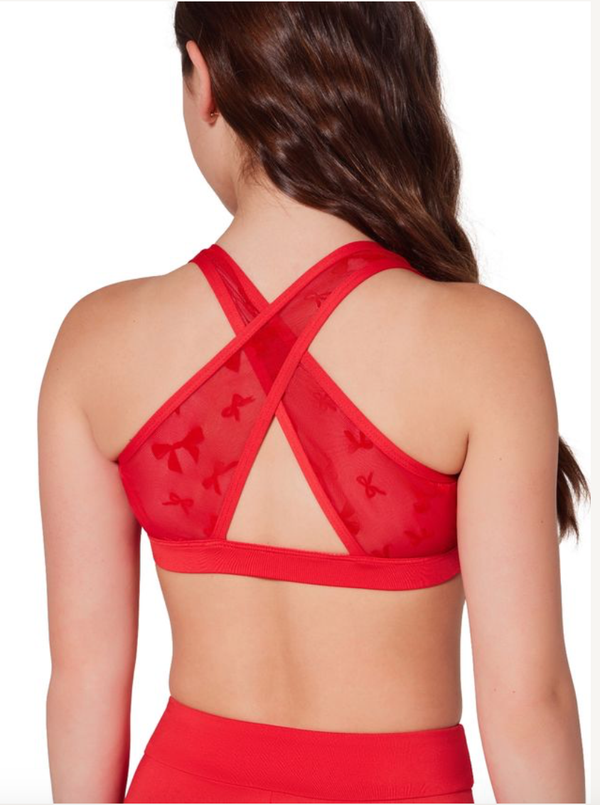Classic tank crop with wide cross straps at the back featuring a sweet bow mesh design. Pair with the Curtsy short for the complete look.